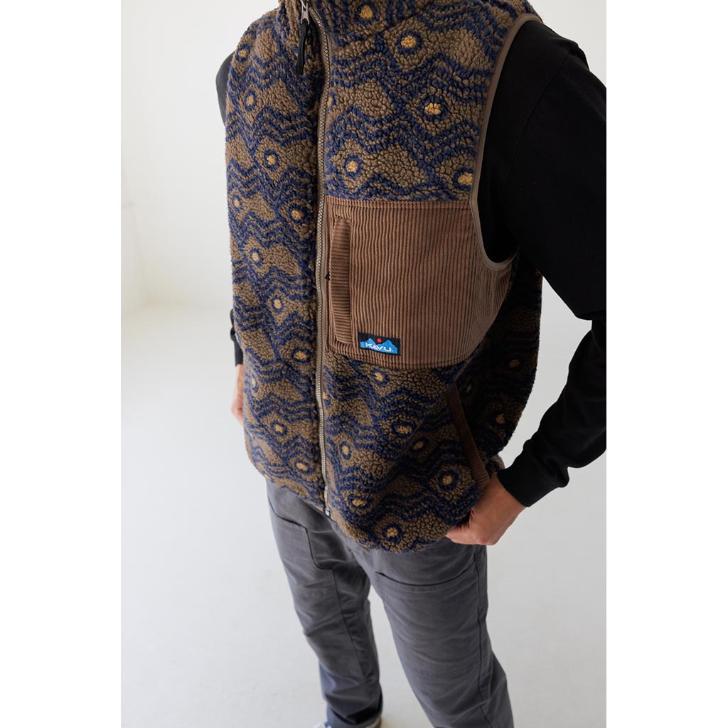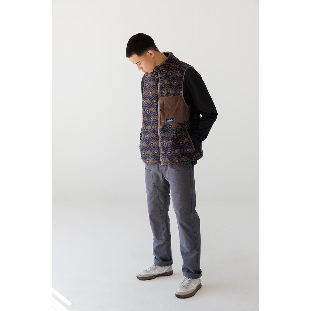 Le gilet Cooper de KAVU se présente sous la forme d'une belle polaire à poils longs qui vous donne l'impression d'être plus confortable rien qu'en la regardant. Mais jetez un coup d'œil à l'intérieur et vous réaliserez que l'entreprise a vraiment pensé à ce que les amateurs d'activités de plein air attendent d'un gilet pour temps froid. L'avant est doublé d'un taffetas coupe-vent pour empêcher Jack Frost de vous transpercer le torse, tandis que l'arrière est doté d'une maille polyester respirante qui sera particulièrement appréciée si vous portez un sac à dos. Le Cooper est aussi beau qu'il est agréable à porter, avec une poche de poitrine en velours côtelé à 8 fils. On retrouve le même tissu en velours côtelé à l'intérieur de la patte de boutonnage, sur les poches à main et sur le parement du cou, ainsi qu'un élastique de contraste sur le col, les emmanchures et l'ourlet.