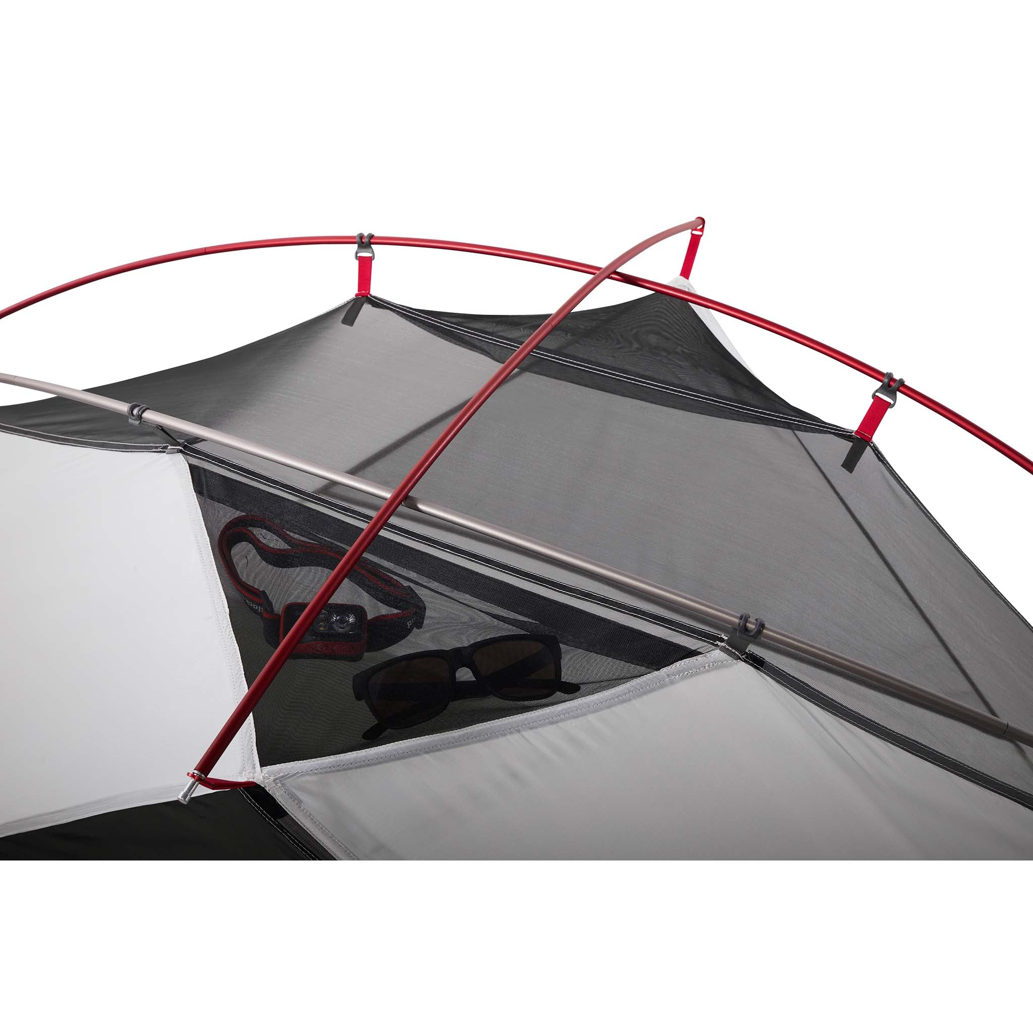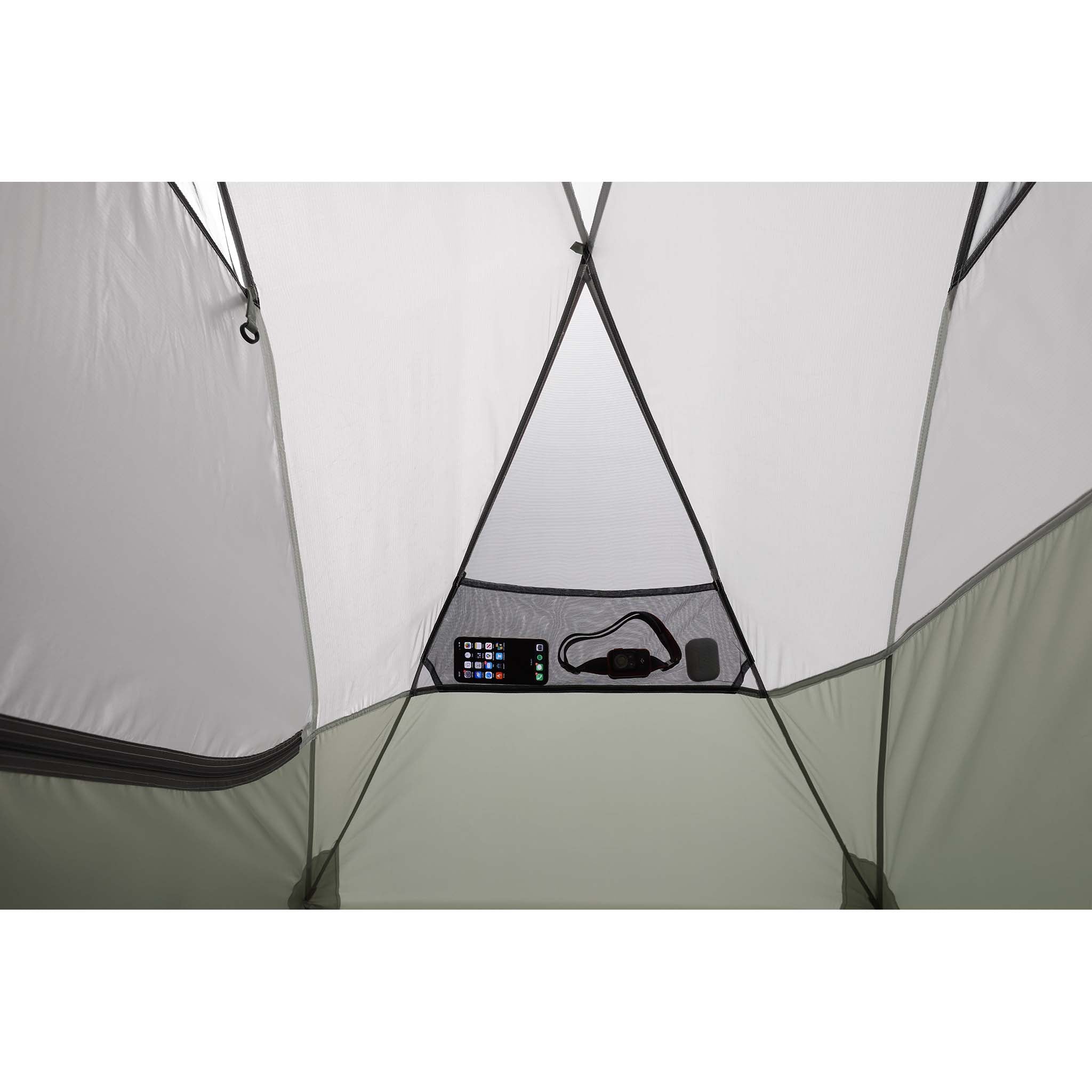 La géométrie unique des piquets optimise la hauteur sous plafond et permet d'installer un grand matelas ; le double toit adaptable permet d'avoir une excellente vue ; les compartiments intégrés pour le matériel et les tirettes de fermeture éclair phosphorescentes améliorent l'habitabilité.