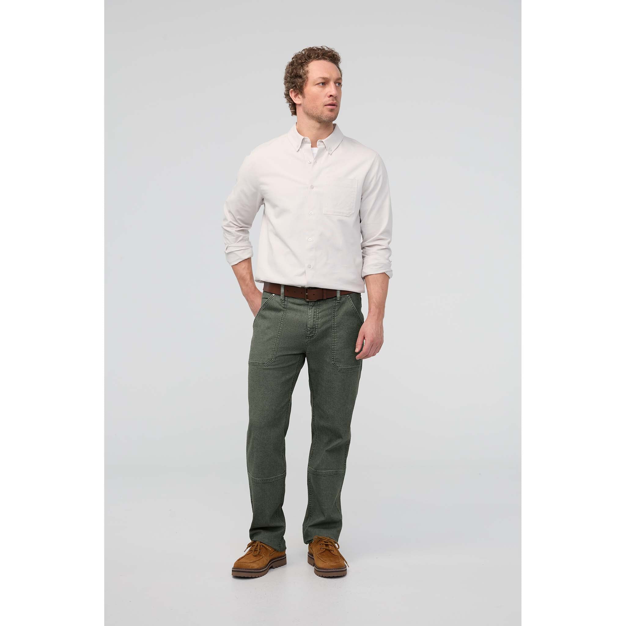 Tout le monde aime les pantalons de travail joliment usés - cet équilibre parfait entre confort et caractère. Le problème, c'est que les vêtements de travail sont conçus pour être portés pendant des années sur le chantier ou à la ferme, et que la toile rigide peut nécessiter un sacré temps d'adaptation. Pouvons-nous vous proposer un raccourci ? Fabriqué en toile extensible (93 % de coton, 5 % de polyester LYCRA T400, 2 % d'élasthanne), ce pantalon utilitaire de Duer est doux et souple dès le premier jour. Le tissu est très extensible tout en restant structuré, et un traitement déperlant assure une protection contre les intempéries. La coupe décontractée au niveau des hanches et des cuisses et la jambe droite donnent une silhouette classique de pantalon utilitaire, tandis que les fibres extensibles améliorent la respirabilité et l'amplitude des mouvements. Mieux encore, ce pantalon est aussi un bon marcheur. Conçu pour durer et résister à l'abrasion, il est assez solide pour le travail réel et sera encore plus beau avec un peu d'usure et de déchirure.