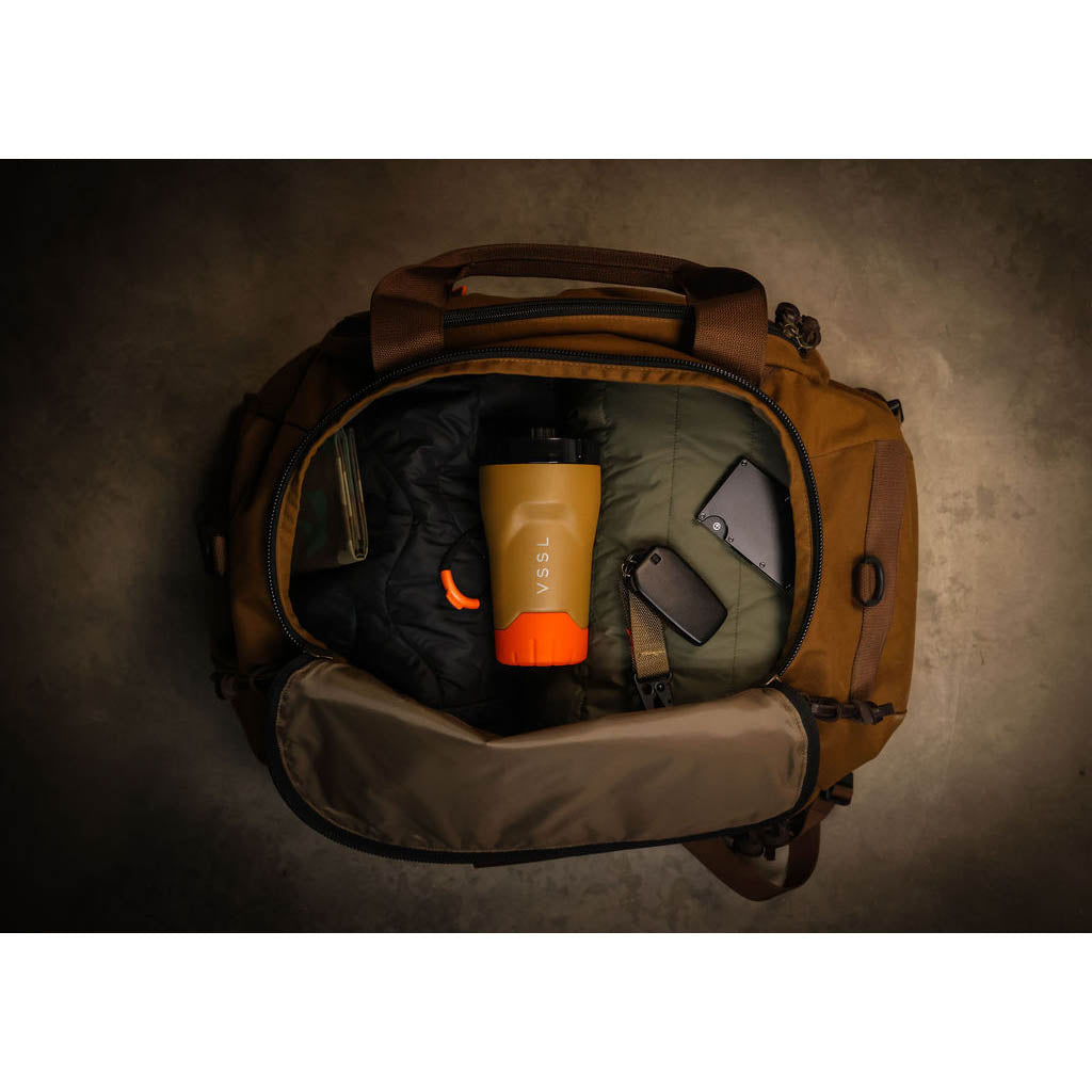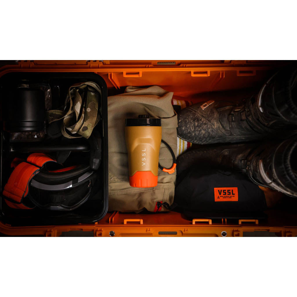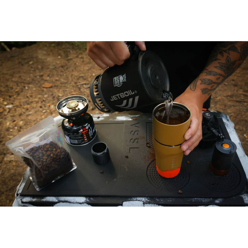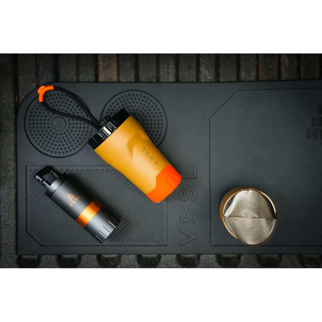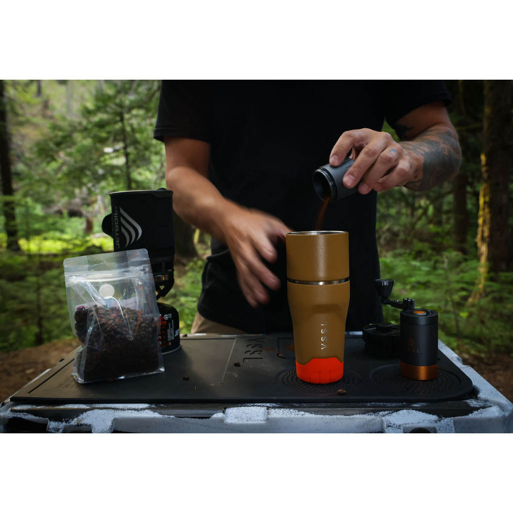 • VSSL est né dans les bois de la Saskatchewan, au Canada, où le fondateur Todd Weimer a passé sa jeunesse à monter des kits de survie bricolés dans des tuyaux en PVC évidés. Cet esprit d'aventure débrouillarde ne l'a jamais quitté, mais aujourd'hui, VSSL s'intéresse moins au matériel d'urgence qu'à l'amélioration des rituels quotidiens dans la nature. Sa nouvelle mission ? Préparer un meilleur café en plein air. Et franchement, VSSL y parvient.
