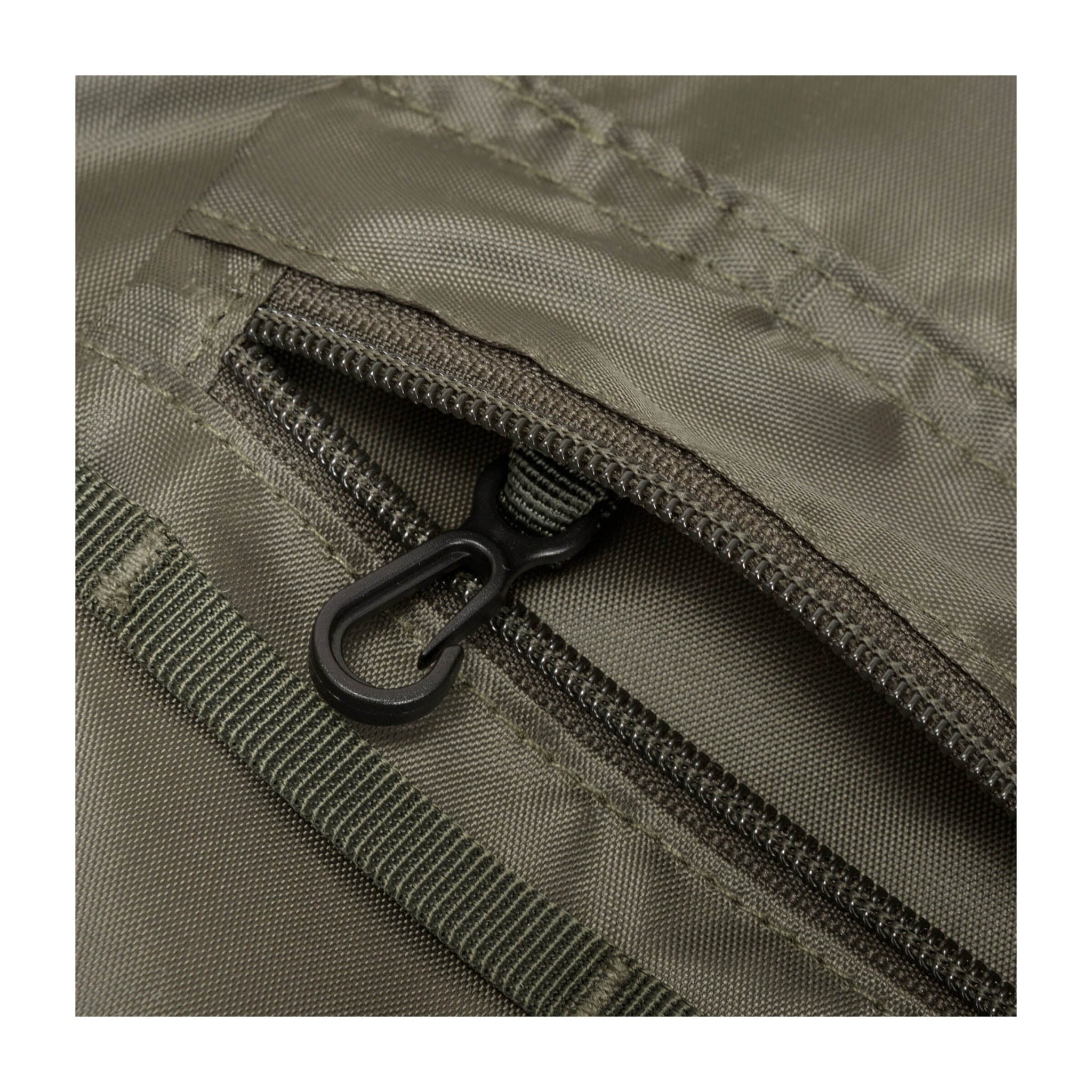 - Corps en polyester 100 % recyclé avec revêtement PU imperméable (sans PFC/PFAS), fermetures à glissière YKK sur l'ensemble du corps.