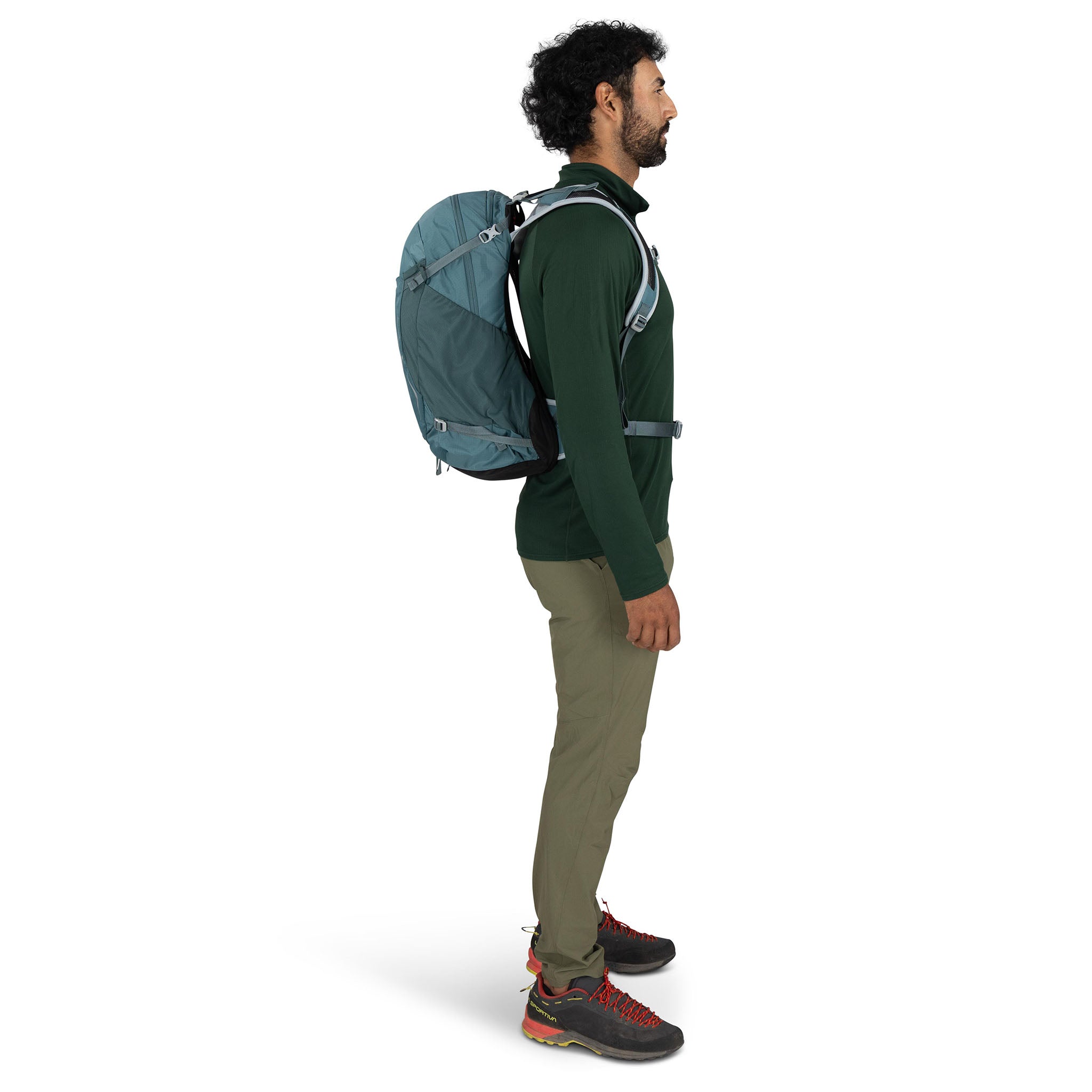 • Dual trekking pole loops + Internal reservoir sleeve with hose port in backpanel and Osprey Hydraclip for easily hanging a reservoir