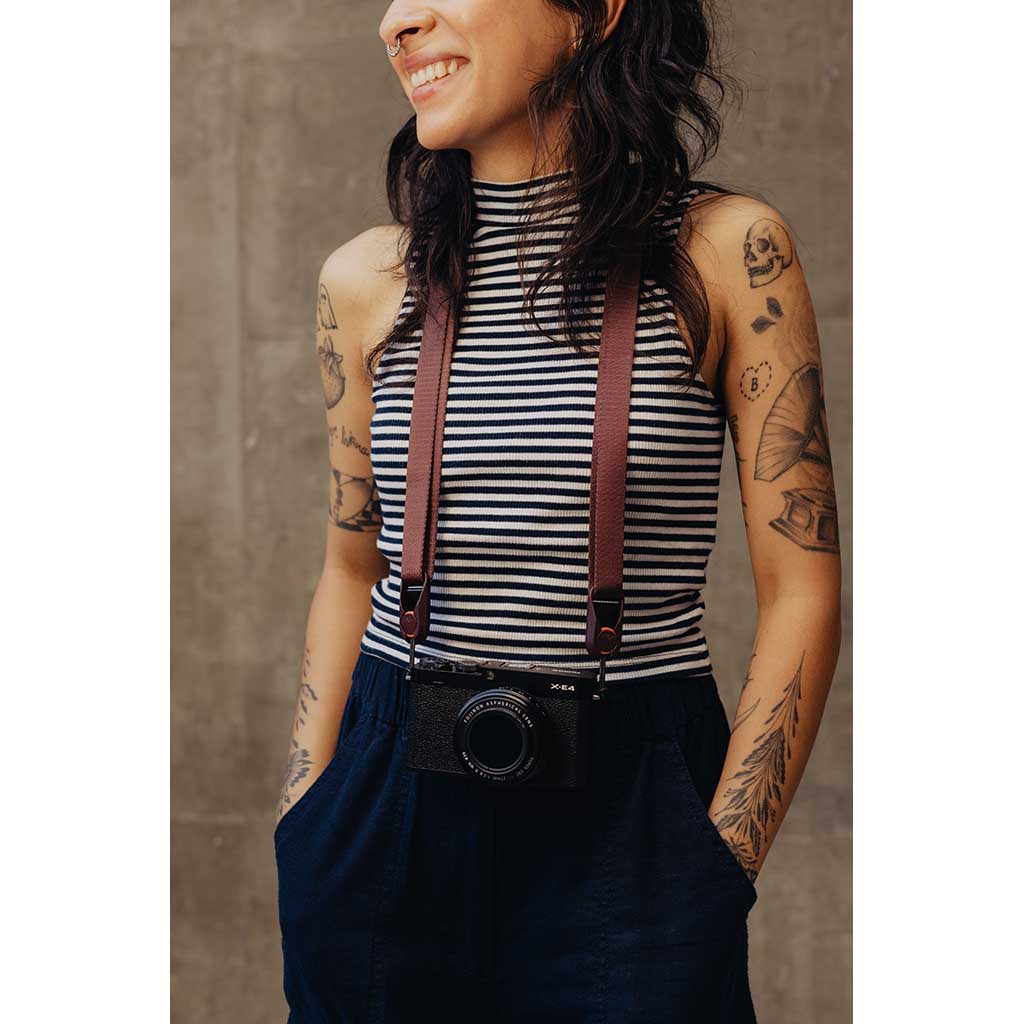 • Full-featured camera strap with ultra-compact design