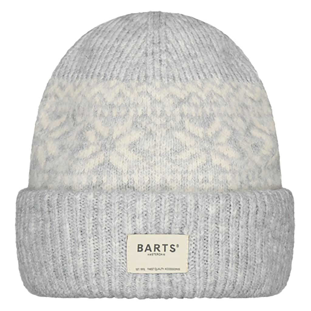 - Ribbed turn-up contrasts with patterned crown section