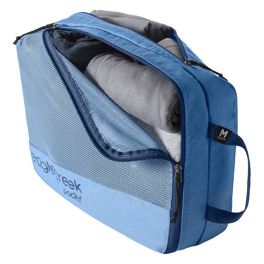 When you’re living out of a backpack, keeping your gear organised — and your clean kit separate from yesterday’s socks — makes all the difference. The Eagle Creek Pack-It® Reveal Clean/Dirty Cube M is built for that exact purpose, with a smart internal divider that keeps fresh clothes from mingling with used ones. Its angled zip makes packing intuitive whether you prefer to roll or fold, while the mesh front panel gives you instant visibility of what’s inside. Crafted from tough, 100% recycled fabric that’s built to last for countless trips, it’s the kind of travel companion that quietly transforms how you pack — simple, durable, and brilliantly functional.