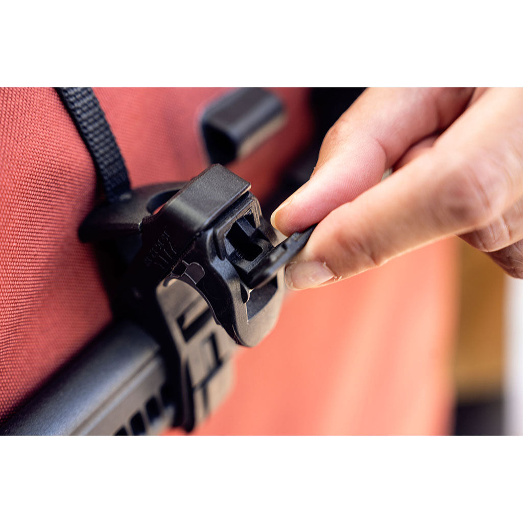 • Quick-Lock attachment system on one side and a padded back panel with chest strap and ergonomic shoulder straps on the other