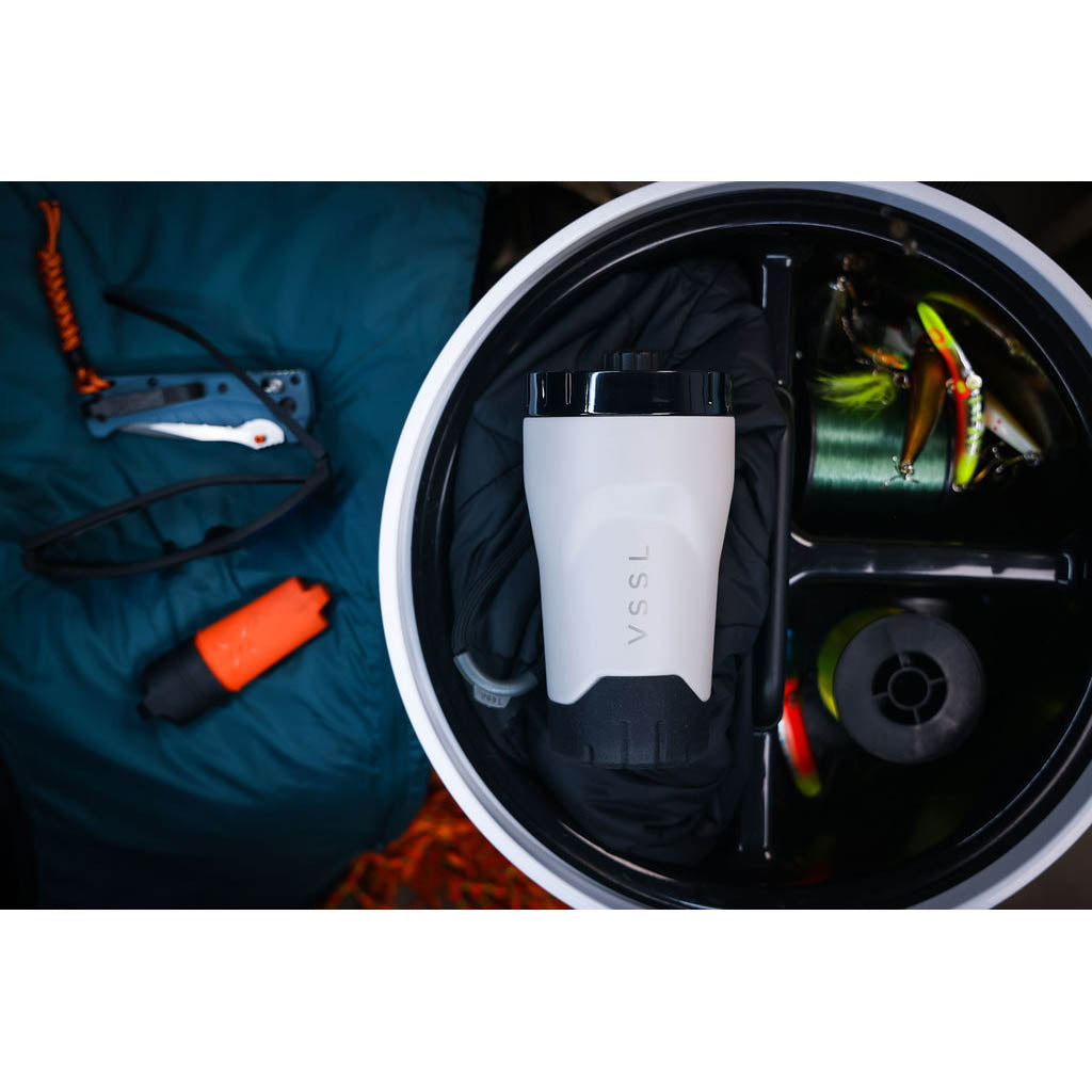 • VSSL est né dans les bois de la Saskatchewan, au Canada, où le fondateur Todd Weimer a passé sa jeunesse à monter des kits de survie bricolés dans des tuyaux en PVC évidés. Cet esprit d'aventure débrouillarde ne l'a jamais quitté, mais aujourd'hui, VSSL s'intéresse moins au matériel d'urgence qu'à l'amélioration des rituels quotidiens dans la nature. Sa nouvelle mission ? Préparer un meilleur café en plein air. Et franchement, VSSL y parvient.