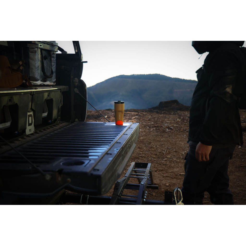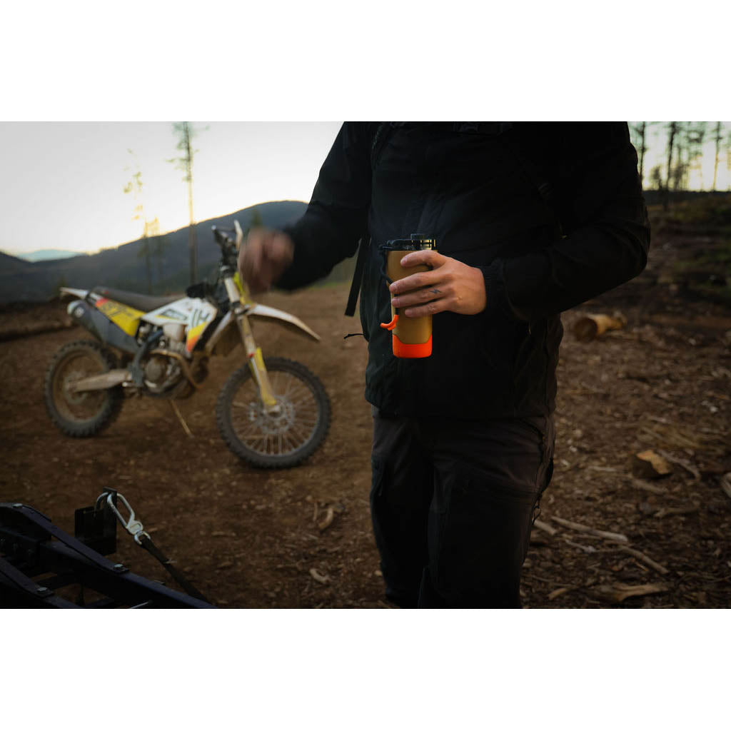 Pour ceux qui aiment les matins audacieux et les cafés bien remplis, le gobelet Rift 16 oz est à la hauteur. Fabriqué en acier inoxydable recyclé extra-épais et isolé sous vide à double paroi, il garde votre café chaud pendant des heures, quelle que soit la longueur de la route. Le couvercle étanche et verrouillable avec fermeture à ressort permet de boire d'une seule main, et la base antidérapante en silicone permet de rester stable pendant les déplacements. Il s'adapte parfaitement à la plupart des porte-gobelets et se fixe facilement à votre sac grâce au mousqueton souple. Conçue pour les départs au lever du soleil, les trajets d'une journée et les infusions au camp de base, c'est la grande tasse pour les grandes aventures.