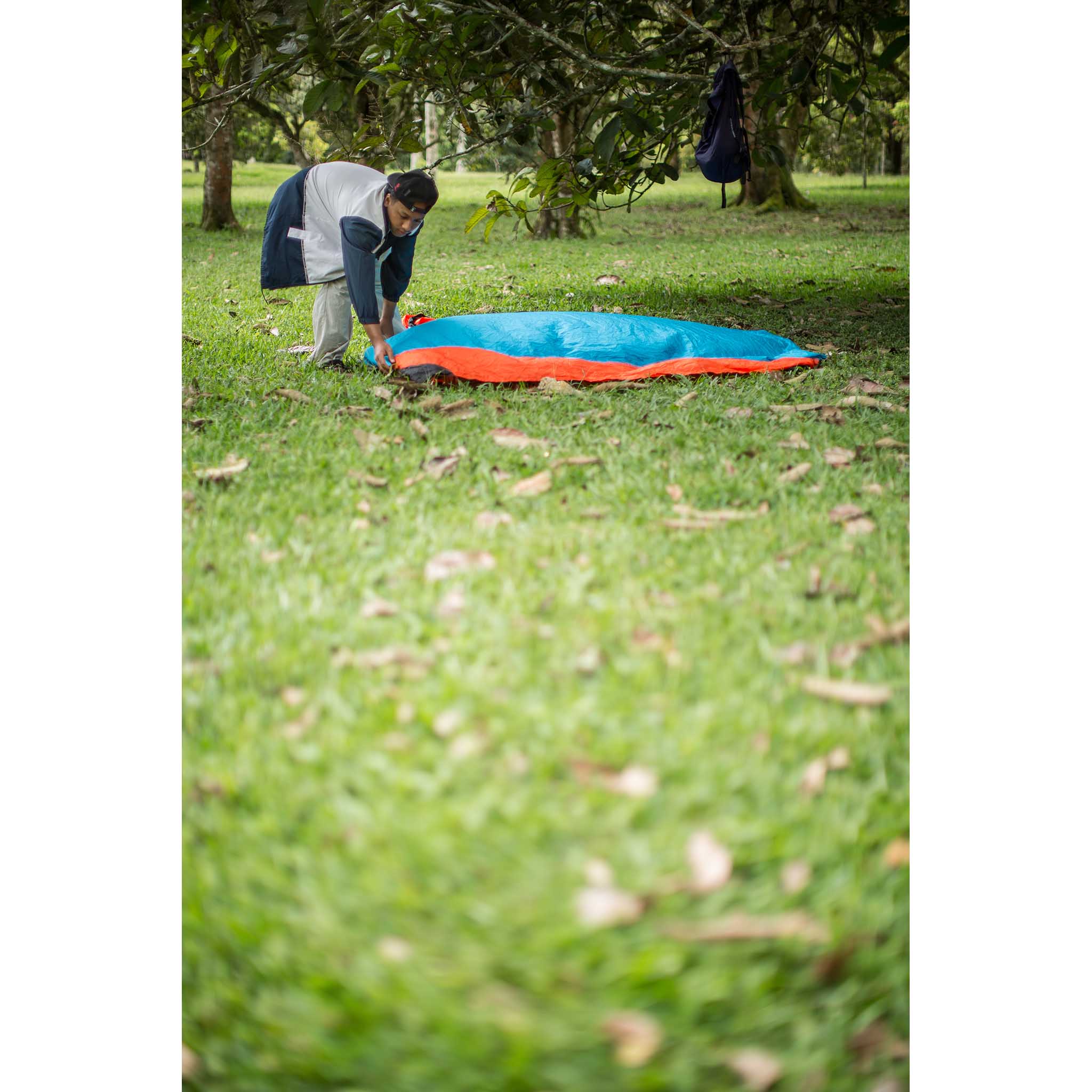 Versatile parachute nylon sheet with ropes and pegs