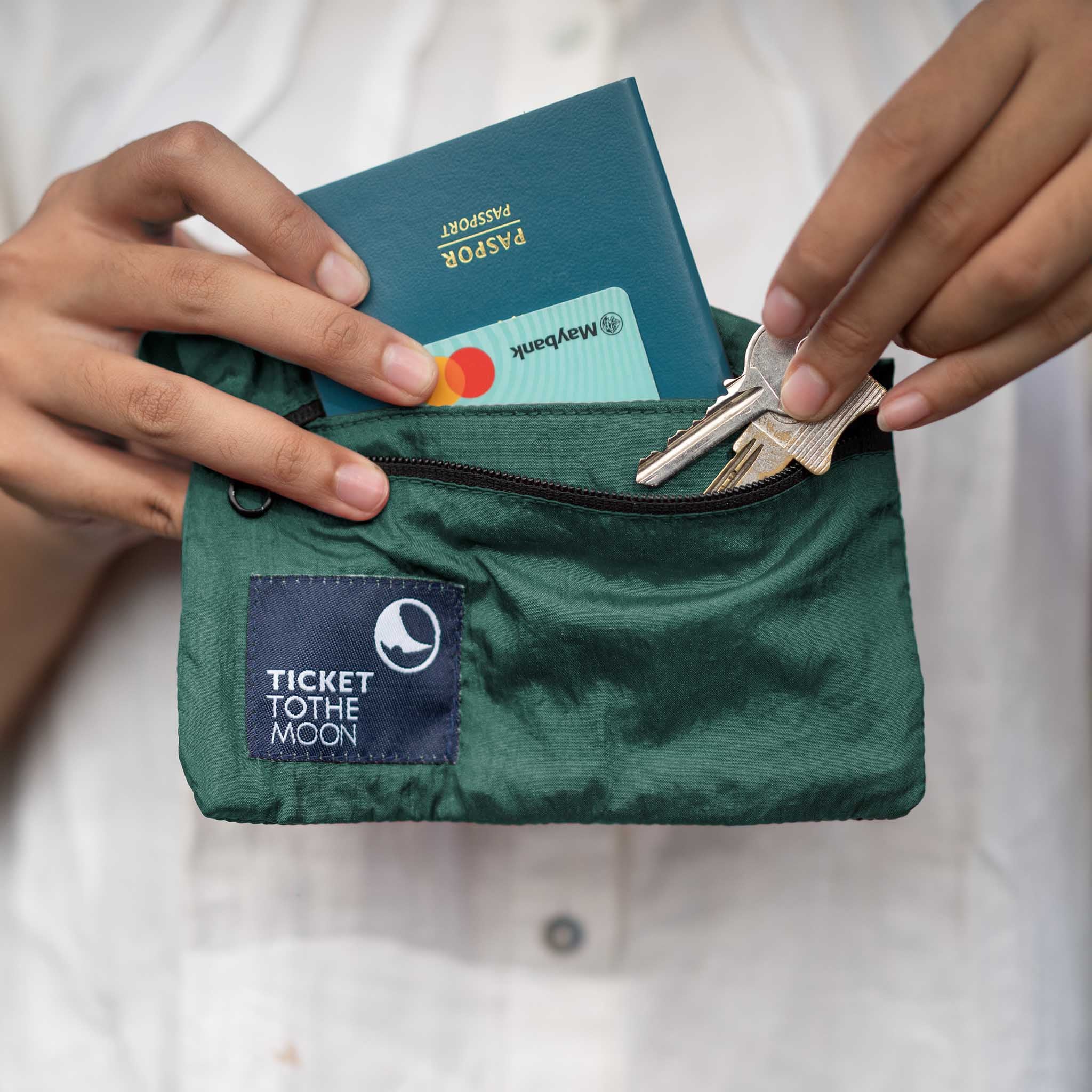 Weighing just 27g, Ticket to the Moon's Travel Pouch is a minimalist wallet made from parachute fabric that'll hold cards, cash, your passport, or other small valuables without adding bulk. The integrated mini carabiners mean you can clip it to your backpack, belt, or keychain rather than digging through pockets or bag compartments every time you need something. Made in Ticket to the Moon's Bali workshop from the same durable parachute fabric as their hammocks, it's built to last through all your adventures. Simple, lightweight, and genuinely useful – the kind of travel accessory that just makes sense.